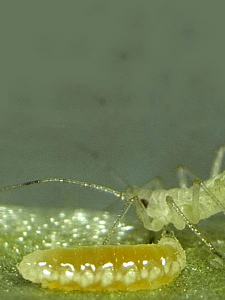 Aus den gelieferten Puppen schlüpfen orange-farbene Larven, die in einem unglaublichenTempo Blattläuse anfallen und aussaugen.