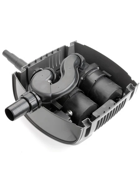 Die Aquamax ECO Twin hat druckseitig einen Ausgang mit 2″-Anschlussgewinde. Sie verfügt über 2 Ansaugstutzen saugseitig mit 1 1/2″ Gewinden. Damit kann schmutziges Wasser gleichzeitig vom Teichgrund und von der Oberfläche (mittels Skimmer = Zubehör) angesaugt werden.