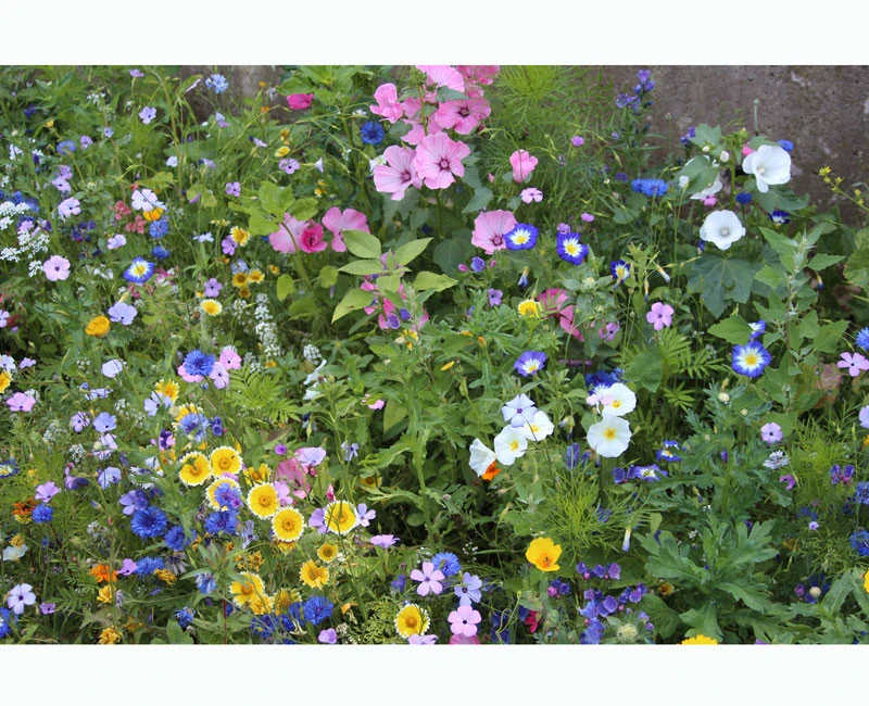 Die einzelnen hochwachsenden Blumen bringen nicht nur bunte Leuchtkraft sondern auch eine Struktur in jede Pflanzung. Die Höhe der einzelnen Sorten liegt bei 80 bis 150 cm. Enthalten sind beispielsweise verzweigte Sonnenblumen, Sonnenhut, roter Lein, Strohblumen, Schmuckkörbchen, Malven etc.