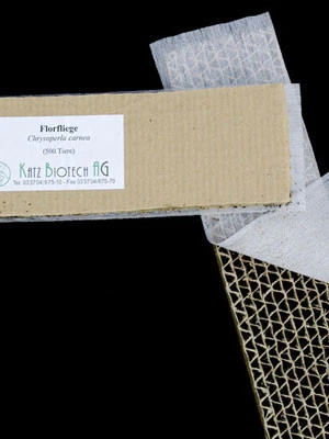 ♦ geliefert werden Florfliegen-Larven, die einzeln in einer Wellpappe in Kammern sitzen.