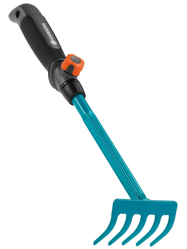 Praktisch: Der Handgriff kann einfach entfernt werden und durch einen beliebigen combisystem-Stiel ersetzt werden – für ein angenehmes Arbeiten ohne Bücken. Der Blumenrechen ist aus hochwertigem Qualitätsstahl und Duroplast-beschichtet.