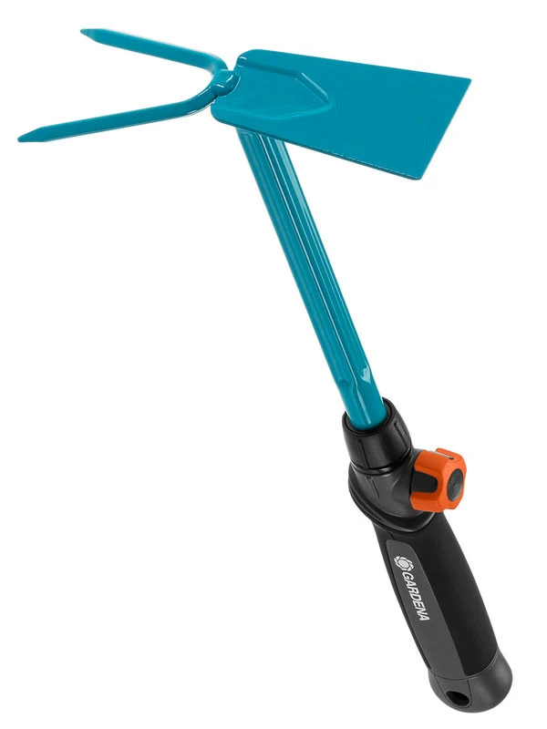 Praktisch: Der Handgriff kann einfach entfernt werden und durch einen beliebigen combisystem-Stiel ersetzt werden – für ein angenehmes Arbeiten ohne Bücken. Das gerade geformte Blatt und die zwei Zinken sind aus hochwertigem Qualitätsstahl und Duroplast-beschichtet.