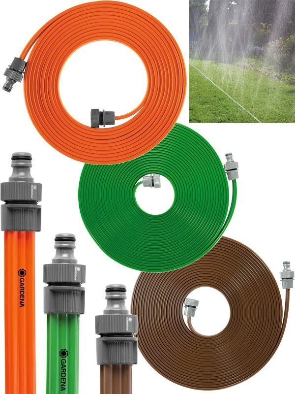 Der GARDENA Schlauch-Regner verspricht optimal feinen Sprühregen für Beete, Rabatte und schmale Zonen. Er ist bereits mit allen nötigen GARDENA Systemteilen ausgestattet, sodass Sie ihn nur noch an die Wasserquelle anschließen müssen. Der wahlweise orange-, grün- oder braunfarbene Schlauch-Regner hat eine Fixlänge von 7,5 m oder 15 m, er ist aber durch einfaches Zusammenstecken bis maximal 22,5 m verlängerbar. Darüber hinaus ist der Schlauch-Regner auch individuell verkürzbar – schneiden Sie ihn einfach auf die gewünschte Länge ab und montieren Sie die Anschlussteile. Für die einfache Beregnung kleiner Flächen.