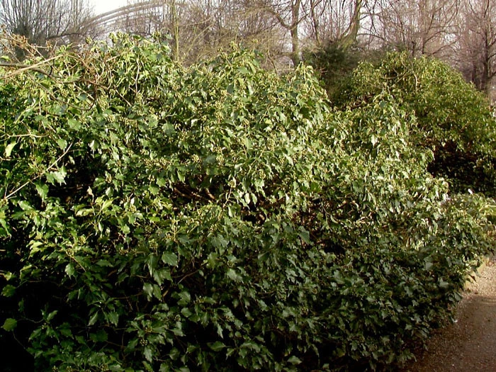 | Blüte, Frucht: | Kugelige, gelbgrüne Blütendolden im Herbst. Erbsengroße, schwarze Beerenfrüchte, die bis ins Frühjahr haften. Beeren mit widerlichem Geschmack, ungenießbar. |