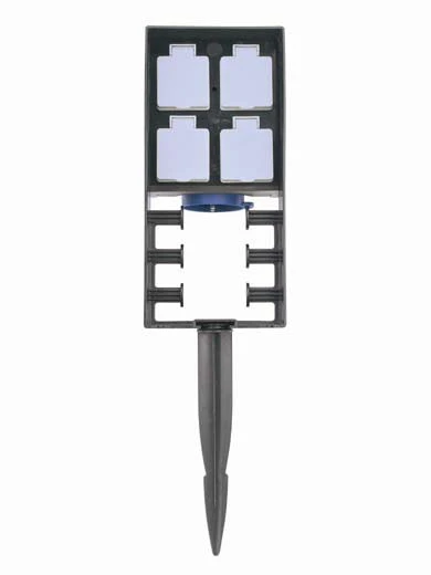 Die OASE InScenio 230 Gartensteckdose mit Erdspieß und Abdeckung verfügt über vier 230 V-Steckdosen mit Permanentstrom. Die Gartensteckdose wird mit der mitgelieferten Abdeckhaube spritzwassergeschützt und für den Ganzjahreseinsatz geeignet.