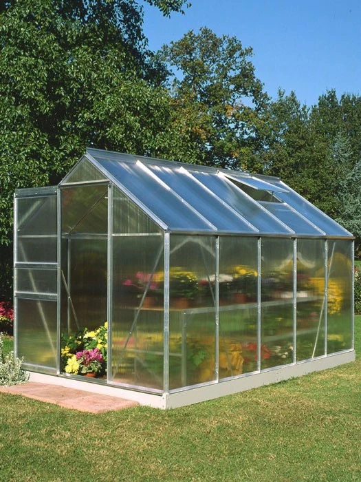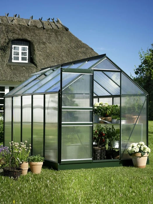 Ein optimales Klima schaffen die isolierenden 4mm Polycarbonatplatten. Zudem ist das Gewächshaus Pluto mit einer leichtgängigen Schiebetür ausgestattet.