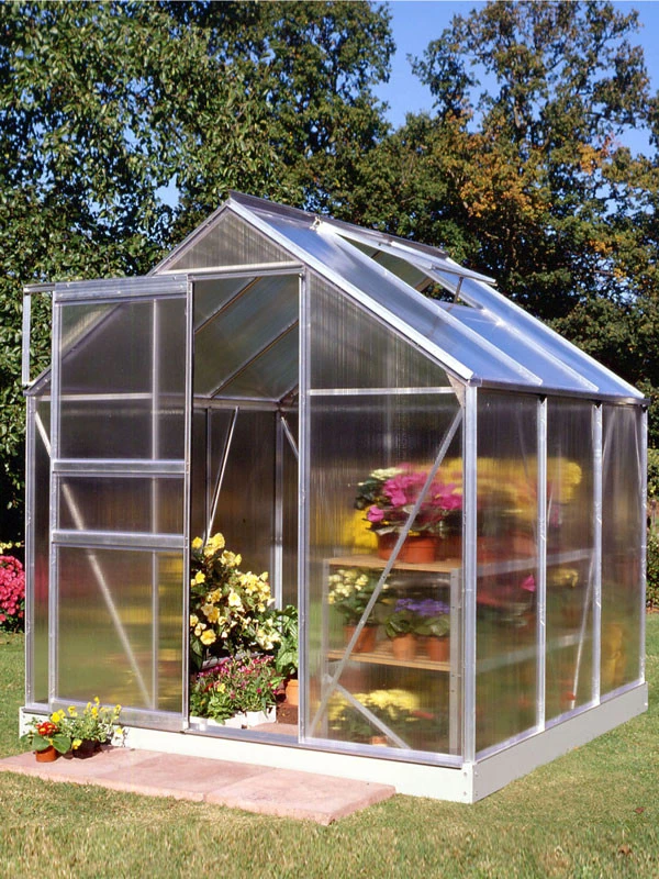 Ein optimales Klima schaffen die isolierenden 4mm Polycarbonatplatten. Zudem ist das Gewächshaus Saturn mit einer leichtgängigen Schiebetür ausgestattet.