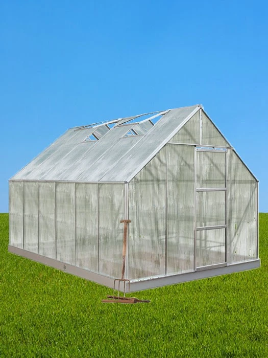 Ein Gewächshaus im eigenen Garten, das wünscht sich jeder Gartenbesitzer. Es sollte geräumig sein und Pflanzen und Menschen Platz bieten. Eine ansehnliche Größe bietet Ihnen das Gewächshaus Uranus zu einem fairen Preis. Die Fläche von 8,3 m³ bietet ausreichend Platz für Pflanzen und Gemüse. Auch durch die Höhe von 2,4 m und den isolierenden 6mm Polycarbonatplatten bietet das Gewächshaus einen idealen Platz, als Winterschutz für größere Kübelpflanzen.