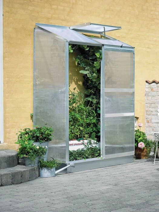 Haben Sie nur wenig Platz im Garten? Dann ist ein Wand-Gewächshaus die Lösung, die Sie gesucht haben. Die Möglichkeiten sind die gleichen, wie bei einem tradiotionellen Gewächshaus bei weniger Platz. Der Vorteil ist aber, dass die Hausmauer während des Tages die Sonnenwärme aufnimmt und nachtsüber wieder abgibt. Das Wandgewächshaus Neptun ist in 2 Größen erhältlich und je mit einem Dachfenster ausgestattet. Die ideale Umgebung für eigene Tomaten, Gurke oder andere Leckereien.