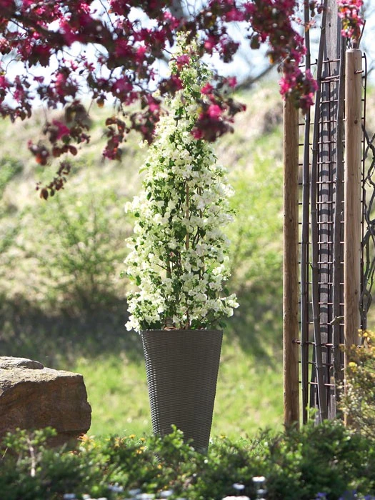 Das witterungsbeständige Material mit Flechtoptik ist robust und leicht, so dass man es sehr einfach transportieren kann. Durch Sollbruchstellen am Boden des Gefäßes kann der Wasserablauf selbst gebohrt werden. Die Pflanzkübel überzeugen durch eine enorm lange Lebensdauer und ihre Widerstandsfähigkeit .
