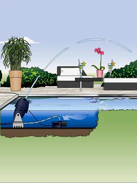 > 1 x schwarzer Gewebeschlauch, Länge 5 m, zum Anschluss an die Pumpe.