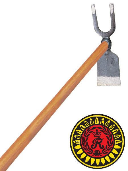 Gartenhacke mit Breitblatt 80 mm und Doppelzinken, für die Pflege von Rabatten und Beeten. Hochwertiger Eschenholzstiel (Länge: 135 cm), geschmiedeter Stahl, Gewicht 700 g.