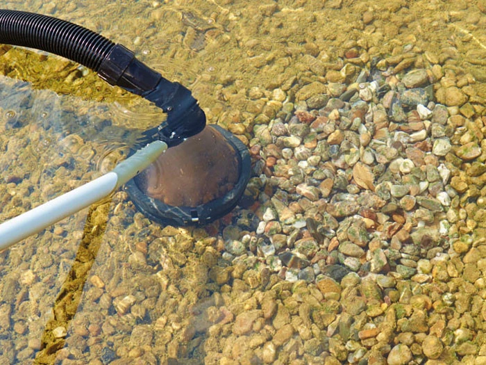 Mulmsauger mit transparenter Polycarbonatglocke und drehbarem 39/50mm Anschluss. Ideal zur schonenden Reinigung von Kiesflächen.