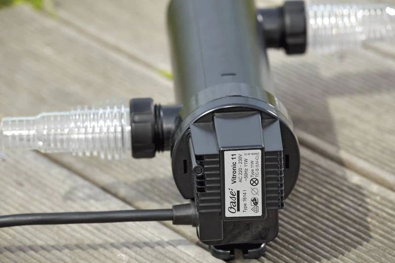 Der OASE Vitronic ist der ideale Einstieg in die Welt der UVC-Vorklärgeräte bis zu 55 W. Die durch das Gehäuse gepumpten Algen werden sicher bekämpft. Durch die optische Funktionskontrolle hat man die Funktion der UVC-Lampe stets im Blick.