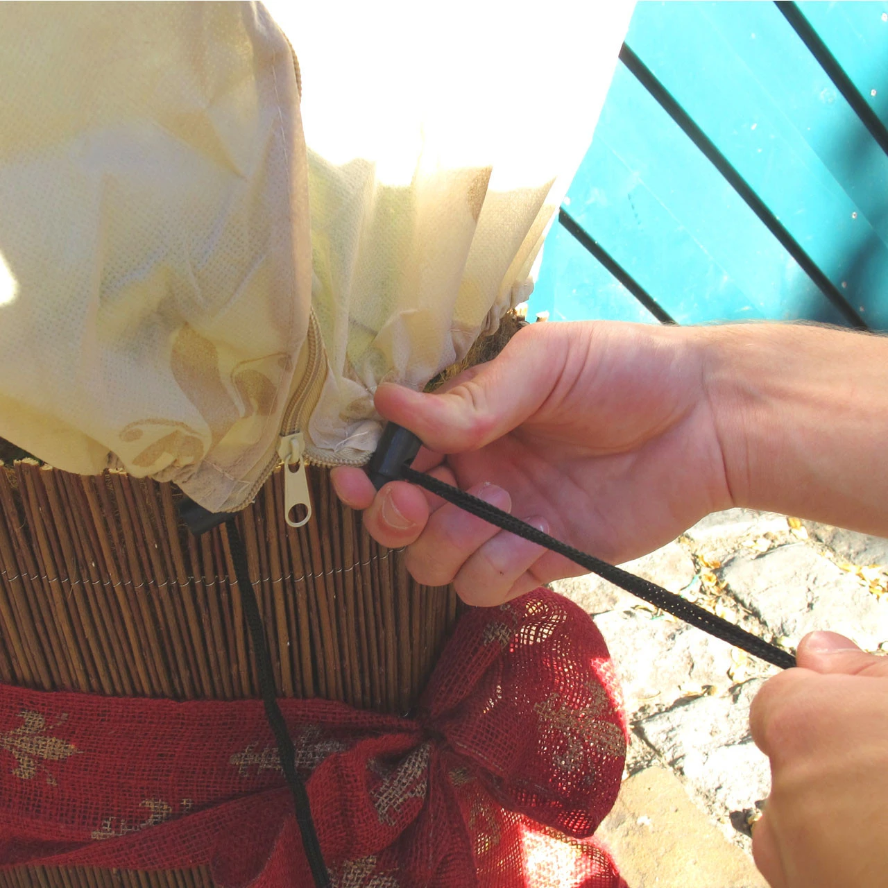 Die zweifarbeige Vlieshaube ist mit festlichen Sternen bedruckt. Die 110 cm hohe und am unteren Rand 110 cm breite Vlieshaube ist für den Winterschutz von Pflanzen geeignet. Die Wintervlieshaube wird einfach über empfindliche Pflanzen gestülpt und mit der Zugkordel im unteren Rand fixiert. Eisige Winde werden gebrochen, der Wechsel zwischen Wintersonne und Frost gemindert.